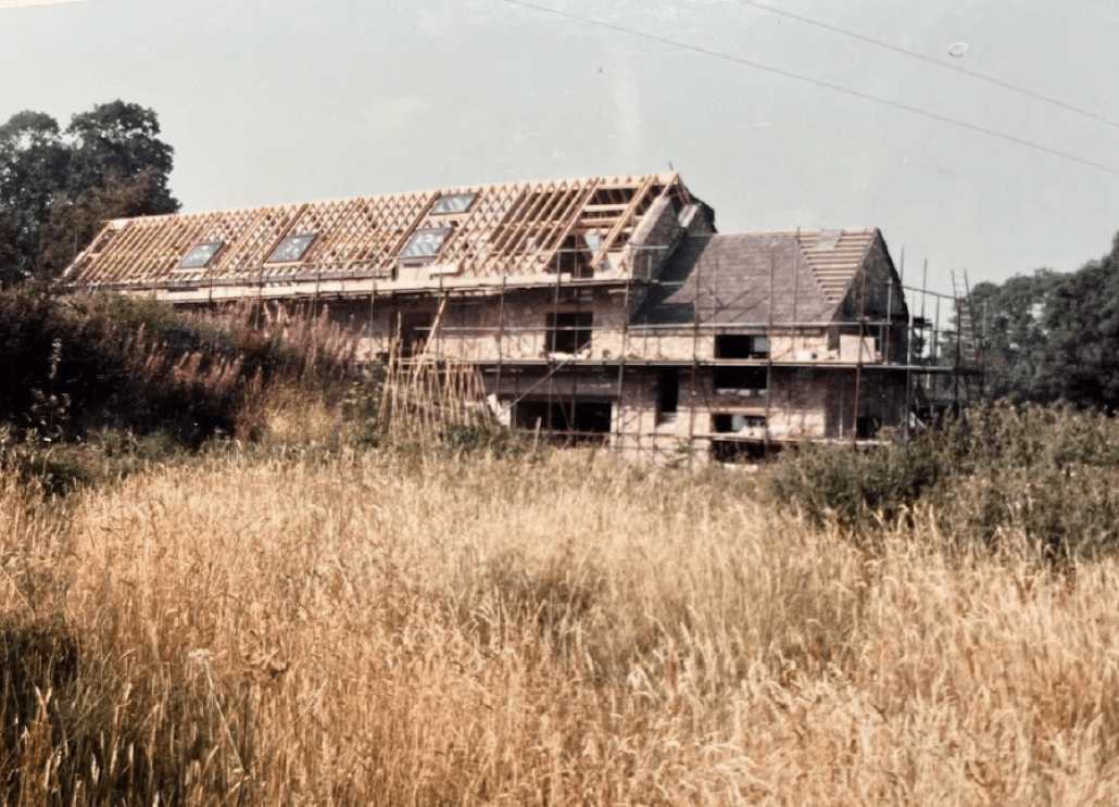 In 1991 as a family of four, Jo and I, with our son (then 11) and our daughter (3), moved UP to the Barn, but for 2 years lived in a huge caravan, guiding and watching the building work transforming the “golden” stones to become a living place for us and for Jo’s mother, whilst I, during the week, taught in the International German School in London, living in bed sits.