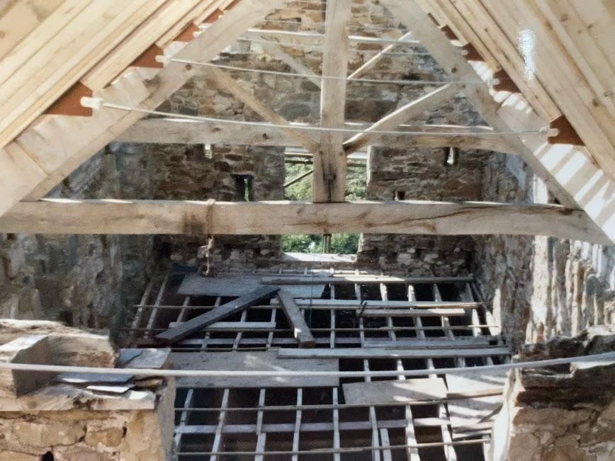 15th Dec The balcony with no railing yet, but the upper part of the Lower Barn with rooms for the children and the parents + fluorescent tape!