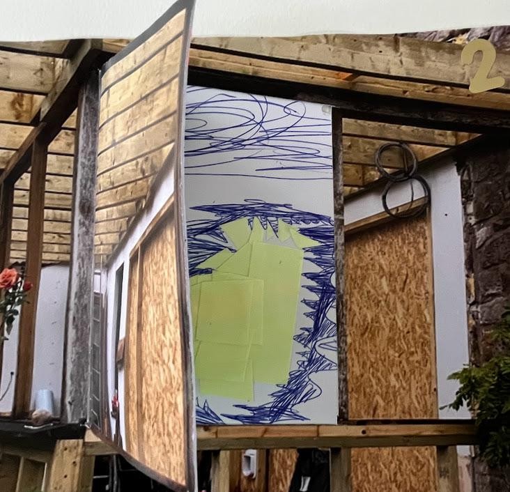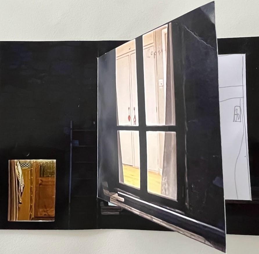 I took photos of every window from the outside with the idea to cut doors into the prints and to create