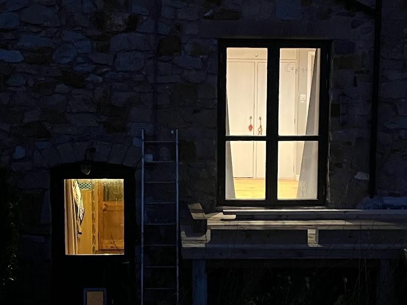 In November 2025, looking at our Barn from the outside on a dark evening the building and adjacent sheds looked like a well lit.